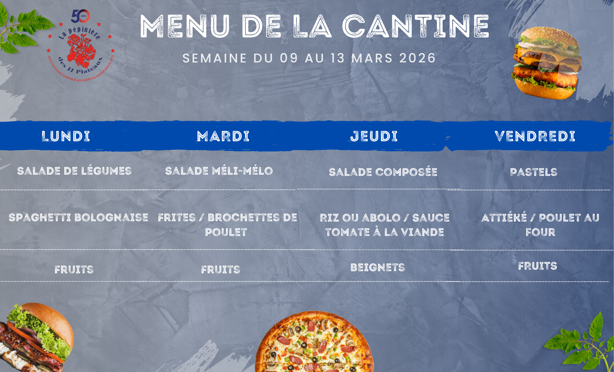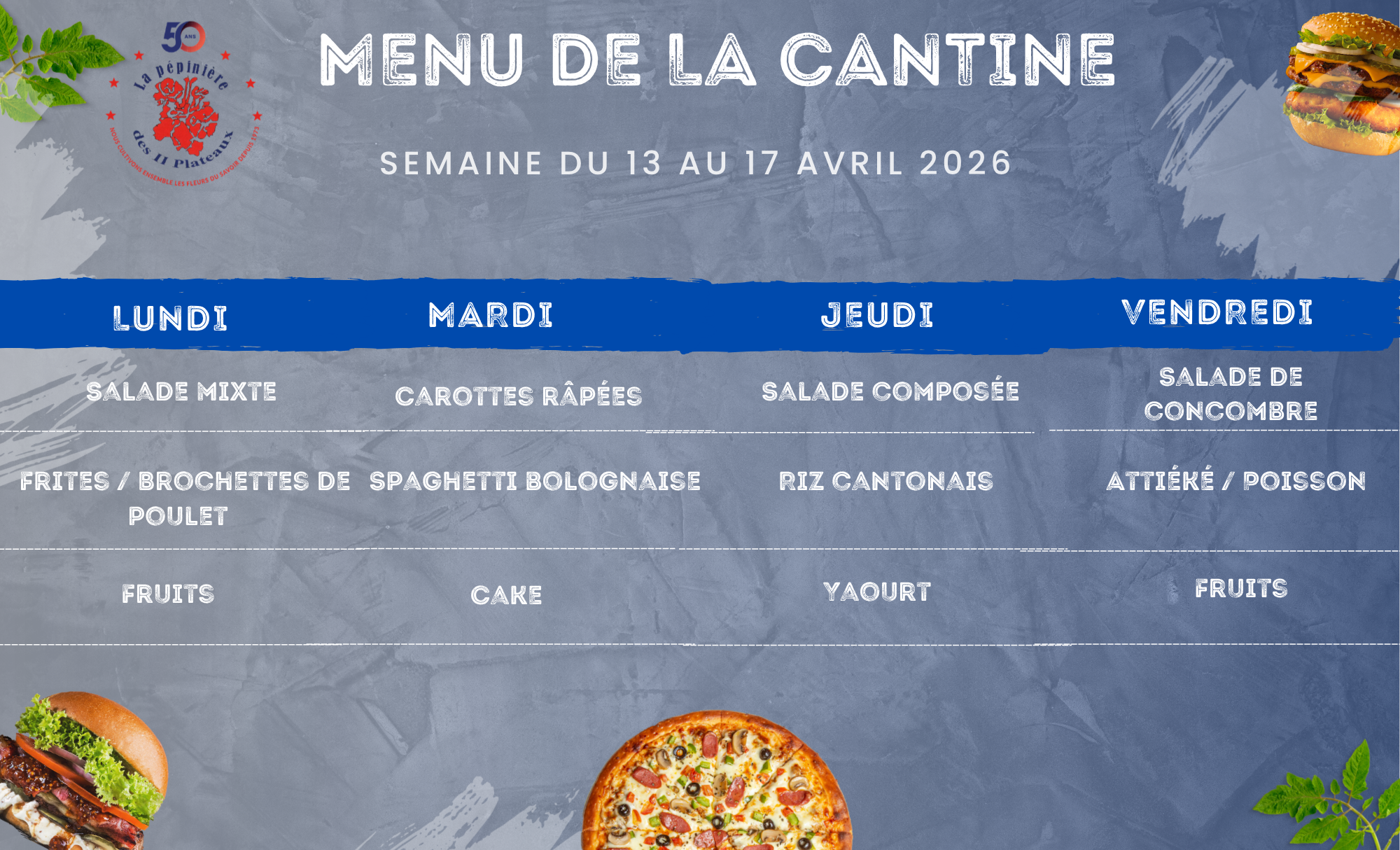 Menu de la cantine